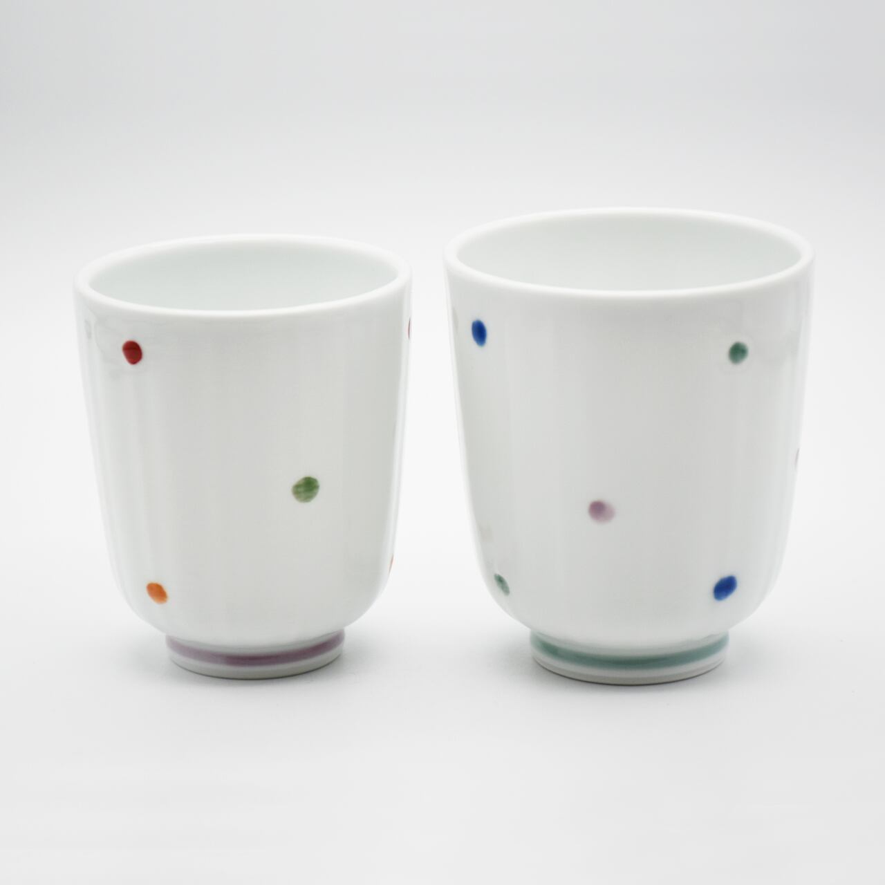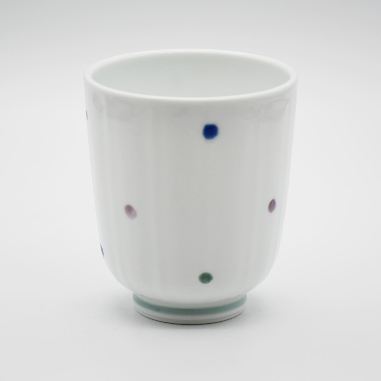 直径:約7.7cm×高さ:約9cm×重さ:約120g・有田焼、水玉が可愛い湯吞・レンジ対応・食洗器OK